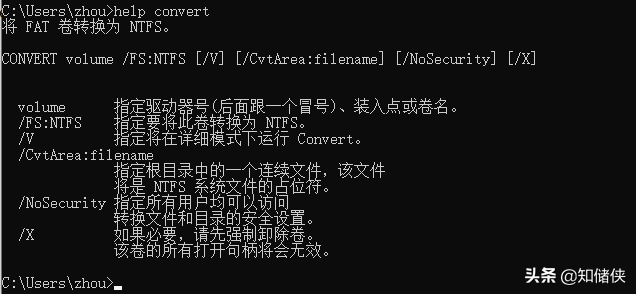 注意:CONVERT命令只能FAT转NTFS;CONVERT命令不能转当前系统盘。