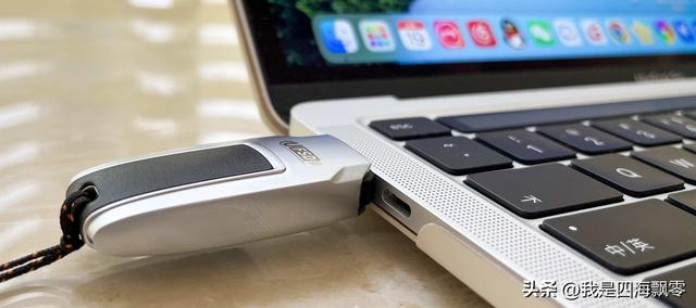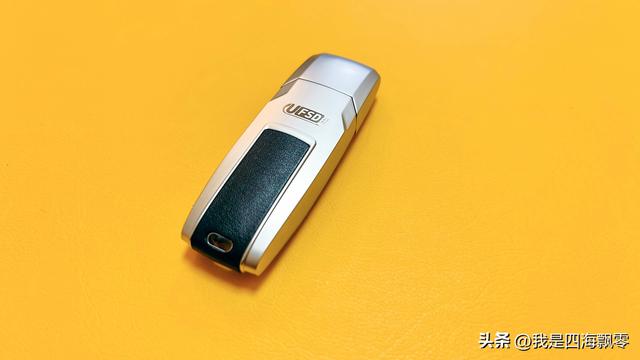 在UFSD-C(快闪U盘)的机身上中线位置有贴有类似皮革的材质,这种素皮在手机背面很常见,在U盘上却很少见。