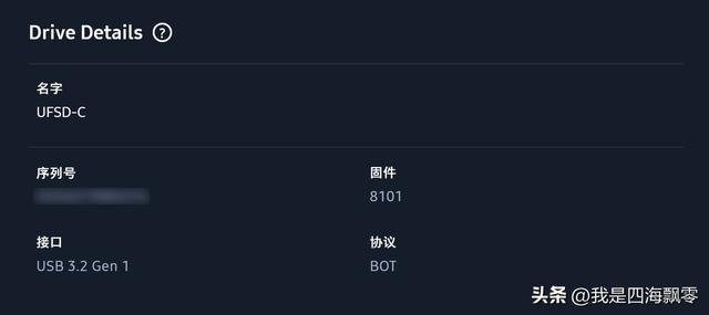 Windows系统测速可以看到UFSD-C的接口:USB 3.2 Gen 1(5Gbps),协议:BOT。