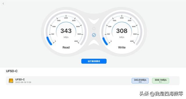 用SENSEI测得数据,连续读取:343 MB/s,连续写入:308 MB/s。