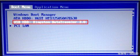 1、出现联想logo的时候按下联想笔记本u盘启动键接着进入到启动项选择窗口(如果启动菜单中没有u盘选项则需要进入bios修改设置哦),用键盘上的上下方向键移动光标选择u盘启动,按下回车键执行,如下图所示: