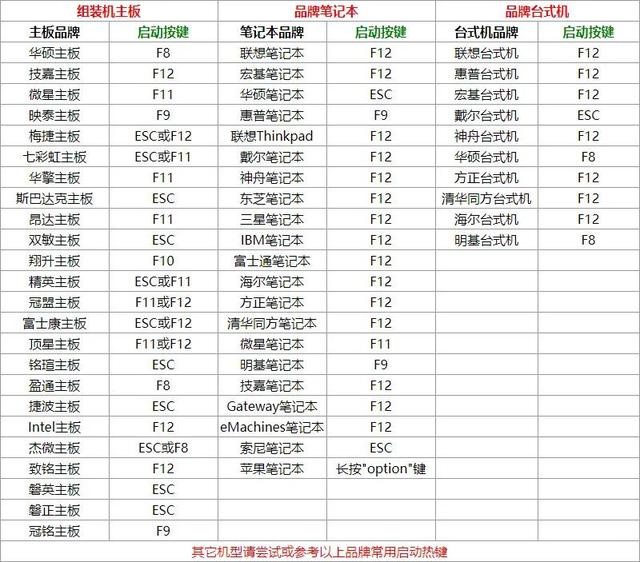 u盘启动快捷键大全